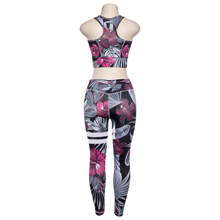 Floral Fitness 2 Piece Set (Purple) – Breathable and perfectly shape your body, make you look more attractive and fashionable